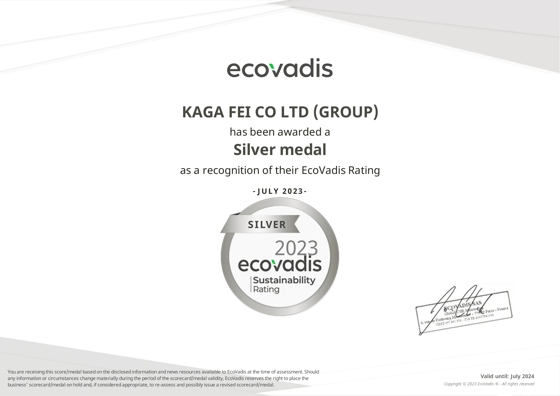 その結果、EcoVadis サステナビリティ評価にて、2023年に「シルバーメダル」の評価を獲得しました。