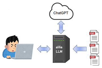 社内文書の登録・検索、議事録の要約、翻訳、アイデア出しなどオフィスワークの様々な業務をサポートします。お客様に合わせたカスタム開発(ChatGPTを使わないオフライン動作環境の構築など)も可能です。