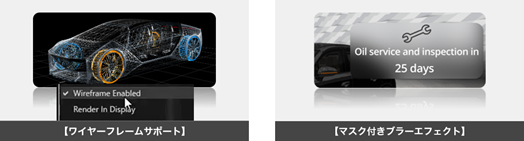 ワイヤーフレームサポート、マスク付きブラーエフェクト