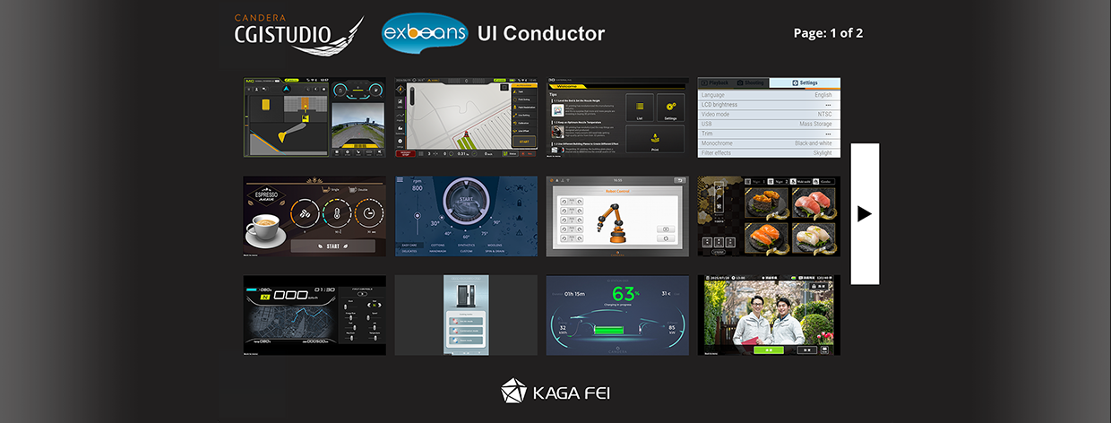 CGI Studioのマルチディスプレイ機能を使用することで、ノーコーディングによってマルチディスプレイ対応、またディスプレイ間の連携を実現しています。