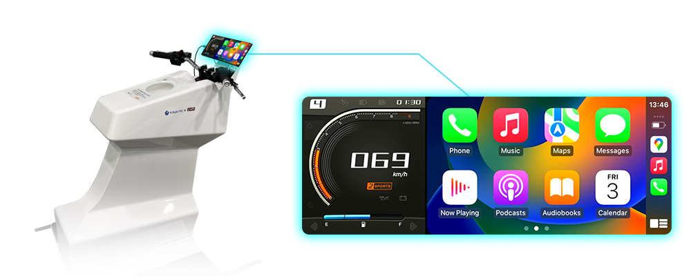 1つのディスプレイに CGI Studio による3Dメータークラスターと CarPlay /Android Autoを実装しました。