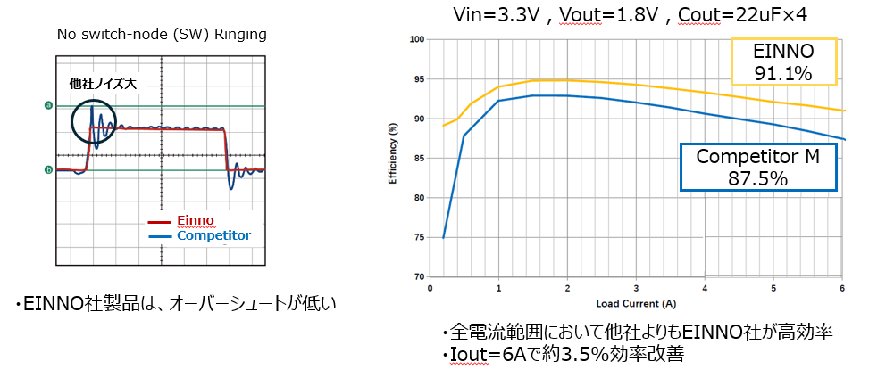 - マイクロパワーモジュールEZ8828の効率は95%以上 (Vin:24V、Vout:12V、Iout:16A)