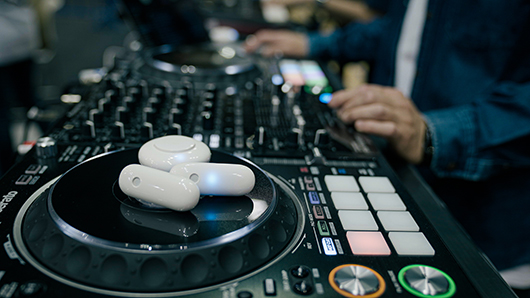 DJ TOSHIKIさんが立ち上げた一般社団法人NEIROで進める「ふるえるスポーツ観戦プロジェクト」では、OntennaのSound Stamp機能を使って、音楽のリズムや手拍子のタイミングをOntennaの振動で観客へ伝えています。DJコントローラーとOntennaのSound Stamp機能が連動することにより、応援コールで拍手するタイミングを伝えたり、DJの奏でる音楽にOntennaの振動と光という演出を加えられます。