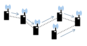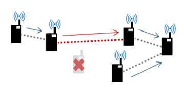 最短ルートをそれぞれのモジュールが自動で選択するので、素早く安定した通信が可能。ルート上の1台で電池切れ等、何らかの接続障害が起きた場合も、別のルートを即座に再検索。手動での再設定をせずとも自動で別ルートを構築するので、通信ロスを最小限に抑えます。