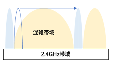 無線モジュールの帯域は2.4GHzのため、一般的に広く使われている周波数です。しかしながら都度、最適なチャネルで通信するチャネルホッピング機能を備え、通信を阻害する他の無線を避けることができます。