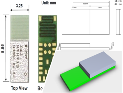 重さはわずか0.1gにも満たないほど。面積を小さくし、かつシールドモールド技術※を採用したことで、金属シールド品より軽く、身に着けるモノや手に持つモノ、ウェアラブルデバイスなど、重さがポイントとなる製品への実装に最適となり、無線モジュールが入っていることを感じさせません。